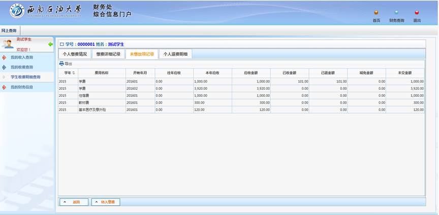 (四)單擊“未繳款項(xiàng)記錄”,可查詢個(gè)人未繳費(fèi)明細(xì)。